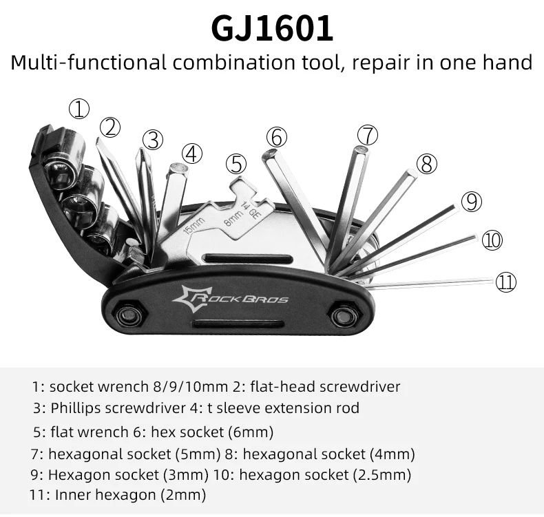ROCKBROS 16-in-1 Portable Bike Repair Kit Specifications: