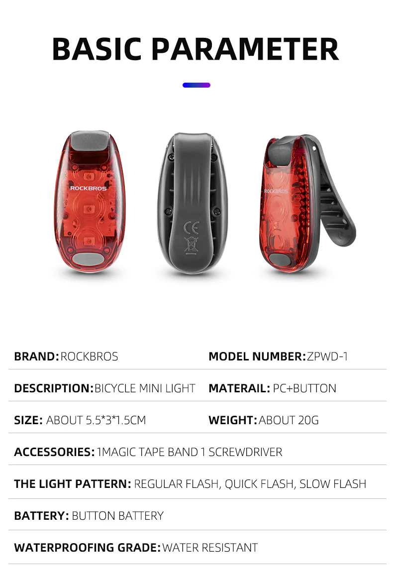 ROCKBROS Mini Red Tail Light ZPWD-1 Specifications: